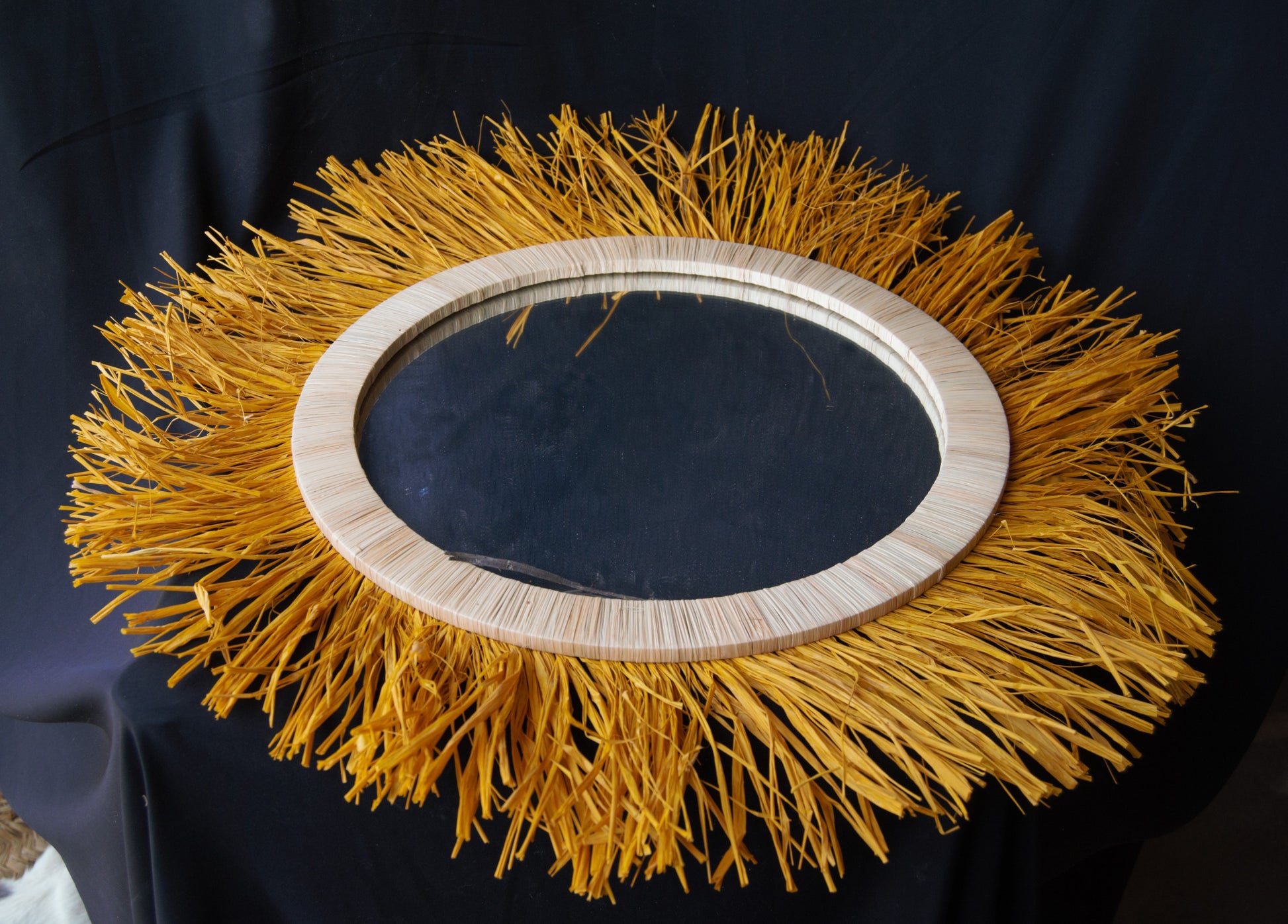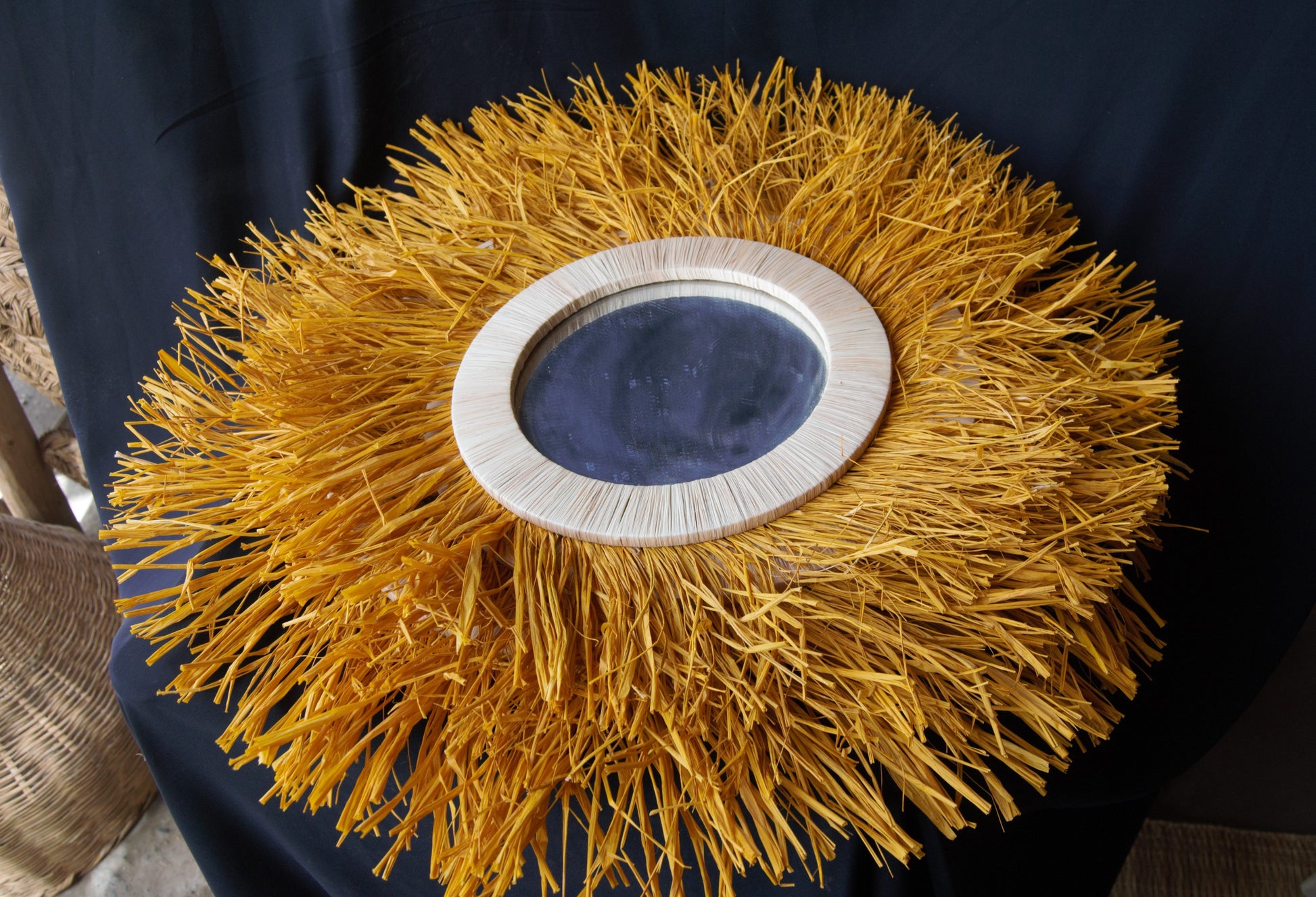 Ce miroir à franges jaunes est une pièce de décoration solaire apportant de la lumière, de la profondeur et une sensation d’espace à n'importe quelle pièce. Sa forme circulaire, douce et harmonieuse, crée une atmosphère à la fois moderne et apaisante, s’intégrant parfaitement dans une variété de styles de décoration, du plus contemporain au plus classique.
